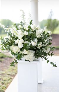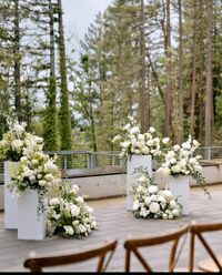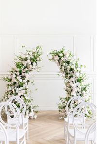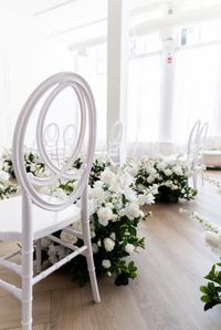Our latest collection features up to six elegant pillars and stunning floral arrangements. Designed in a Chic Gardenesque cloud style, these florals will be showcased on our sleek white acrylic ceremony plinths.